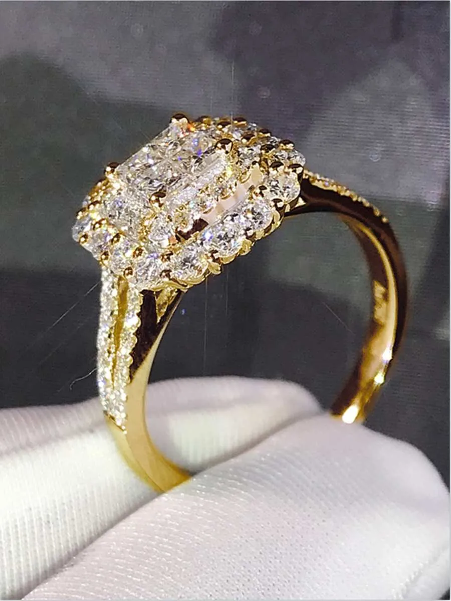 1pc Luxury Gold Rings Shiny Cubic Zirconia Statement Rings For Women For Party Banquet Wedding Festival Gift And Valentine’s Day Gift