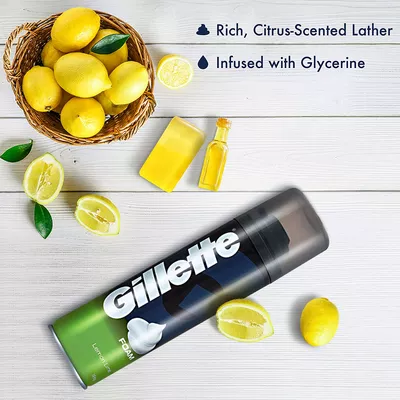 Gillette is a brand to knows exactly what it takes for men to look appealing and stay confident all the time, it brings to you products that are specifically crafted to deliver all you desire – style and comfort. The Lemon Lime Gillette Foam will bring the fresh burst of a hundred lemon trees to your bathroom as you are struggle to lose your sleep every morning. The fragrance adds a refreshed energy to your style as you start your day, so you will be left energized and with skin that feels soft and smooth. The rich, citrus-scented lather spreads easily and rinses clean for that foam shave Gillette foamy shaving products feature Gillette comfort glide formula including glycerine to hydrate and special lubricants to enhance razor glide for a smooth, comfortable shave.