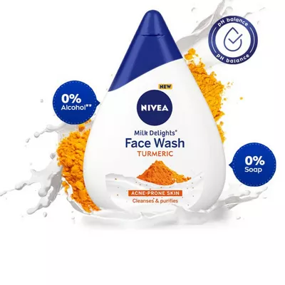 Achieve clear, healthy-looking skin with the gentle yet effective cleansing of NIVEA Milk Delights Face Wash Turmeric.