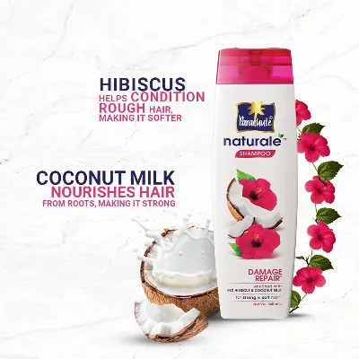 Brand: Parachute Naturale Product Benefits: Strong & Soft Hair Item Form: Liquid Shampoo Material Type Free: Paraben, Silicone Free Scent: Coconut Hair Type: All Hair Types Liquid Volume: 320 ml Special Feature: Contains Red Hibiscus & Coconut, Vegan