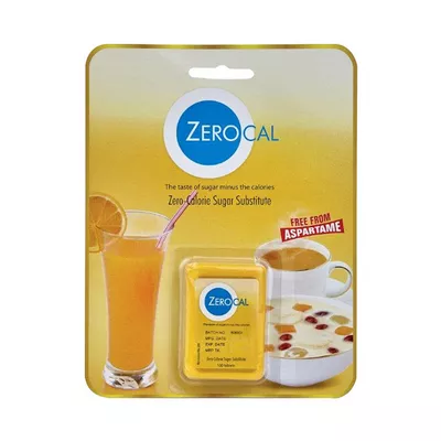 You can get Zerocal tablets in a pack of 100. The handy and compact pack size allows you to carry Zerocal anywhere. Ingredients: Sucralose, Lactose, Colloidal silicon dioxide
